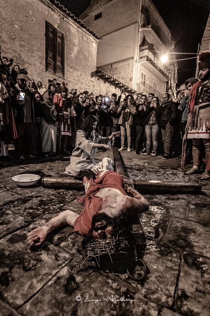 Il mercoledì santo prende vita “A Vasacra” una meravigliosa rappresentazione vivente, a cura dell’Ass. Arcobaleno, degli ultimi momenti della vita di Gesù, dall’ultima cena fino alla resurrezione dal sepolcro. È così che il paese si trasforma in un set a cielo aperto e una parte della cittadinanza recita e veste i panni dei personaggi biblici. La rappresentazione è accompagnata dai bellissimi versi scritti in vernacolo dialettale dal Prof. Carmelo Orofino e da Don Sandro Bernunzo, di una forza poetica e di una bellezza senza pari.