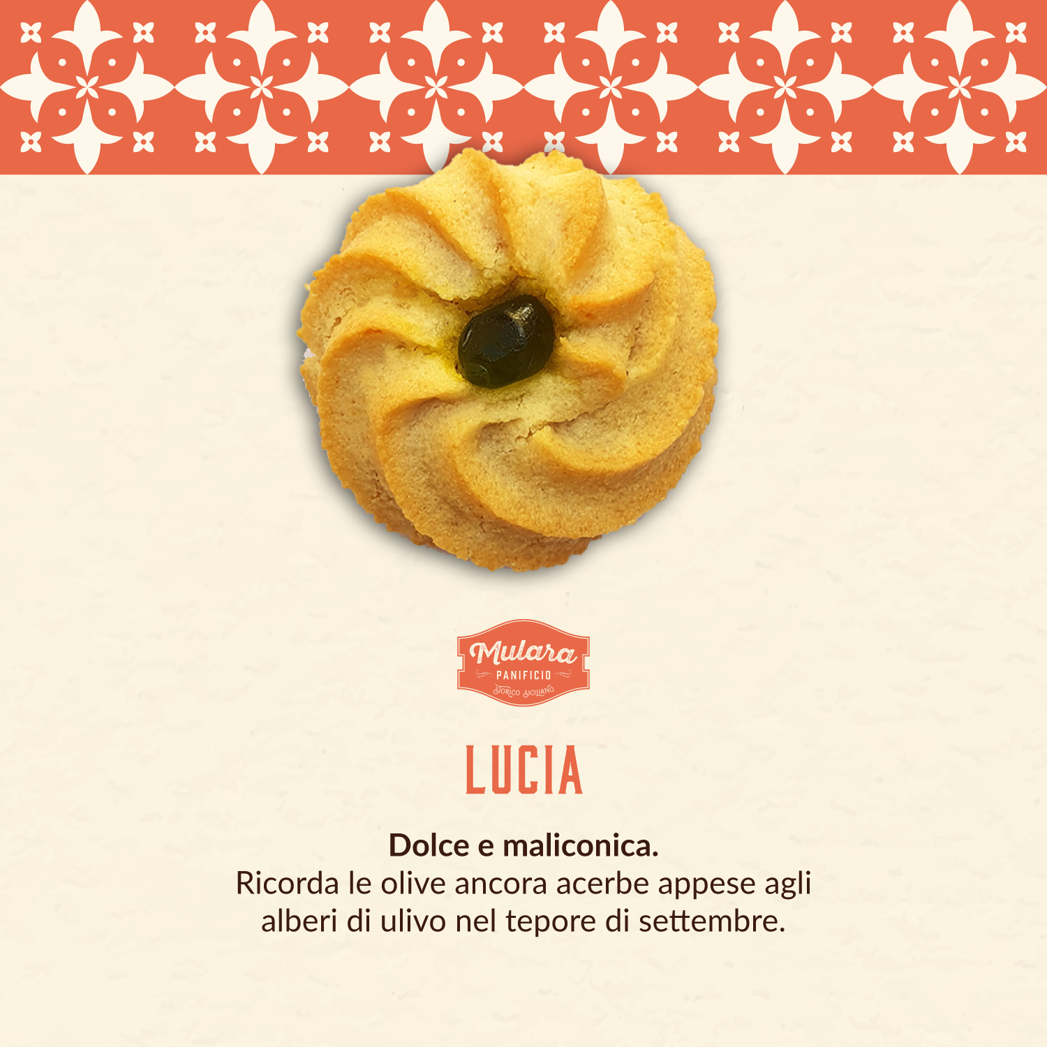 Composta e sobria, dolcemente attraente e malinconica, con la sua ciliegia verde Lucia ricorda le olive ancora acerbe appese agli alberi di ulivo nel tepore di settembre.